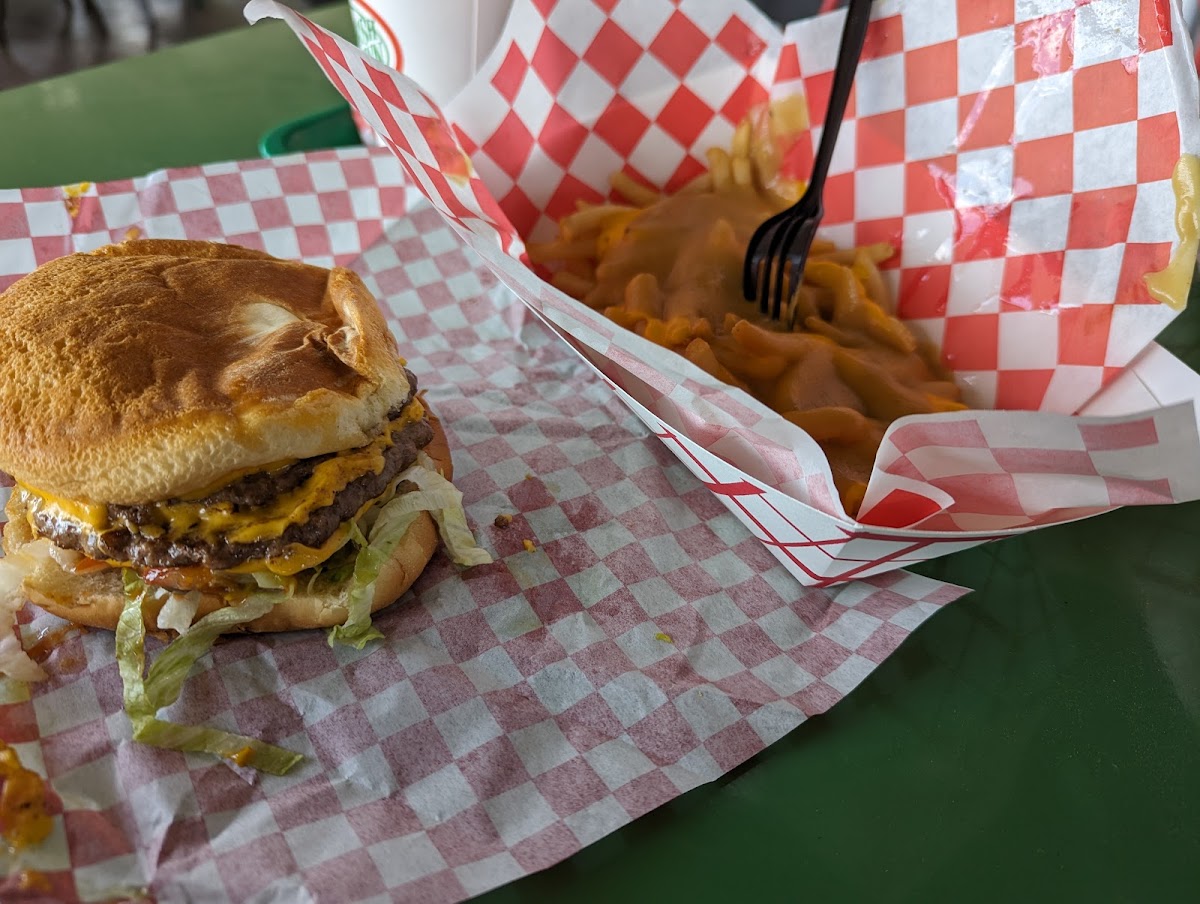 Great local restaurant! More than a burger joint. I’ve never had anything that wasn’t delicious. Expensive menu that offers ribs, Spaghetti, fried chicken,Mexican food,wings and more. This place has it all! Their burgers are legendary. My favorite is the patty melt with grilled onions. Add a cup of gravy to dip your fries in, to you do it up like a local. Try to hit it before or after 12 noon to miss the high school kid lunch hour rush. If you wanna do drive through the line may be to the street from 5-6. Mmmmm, I love this food!